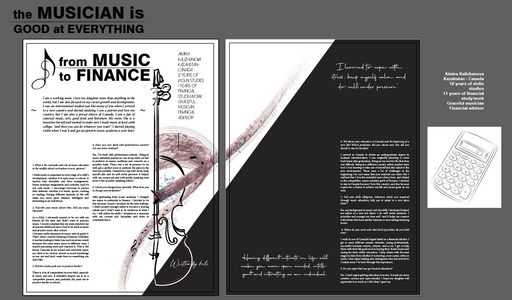 Fourth attempt to make layout for the article. Combine the shape of a violin, the wind that begins with notes and was supposed to turn into mathematical formulas. I was not very happy with the color and presentation of the style.