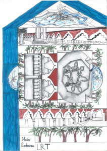 When I first began to study and explore the Masjid Jamek mosque, I was very interested in the architecture of the mosque and its history. As it turned out, the mosque was built on the basis of the style of Moorish Architecture. And further, the deeper I explored this mosque, the more I admired its scale and history. The idea of making a map of a mosque came in layers by chance when I saw first time transparent paper. I realized that I can make a very interesting effect of several layers. And the first layer, I decided to make a top view. So, I used Google Map to see how the mosque looks on top. The first sketch was very spontaneous. When the idea came to me, I just frantically tried to remember where there were which zones and tried to reflect them in the figure. And so the first sketch of my card appeared.