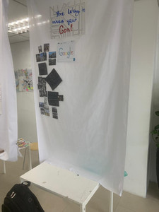 At the end of this week we received a task, or rather a regular workshop, which turned out to be no less, even more interesting than previous projects. In ICAD there is a space where design students works are usually exhibited. It was in this place that we put up tables and organized our own work space.